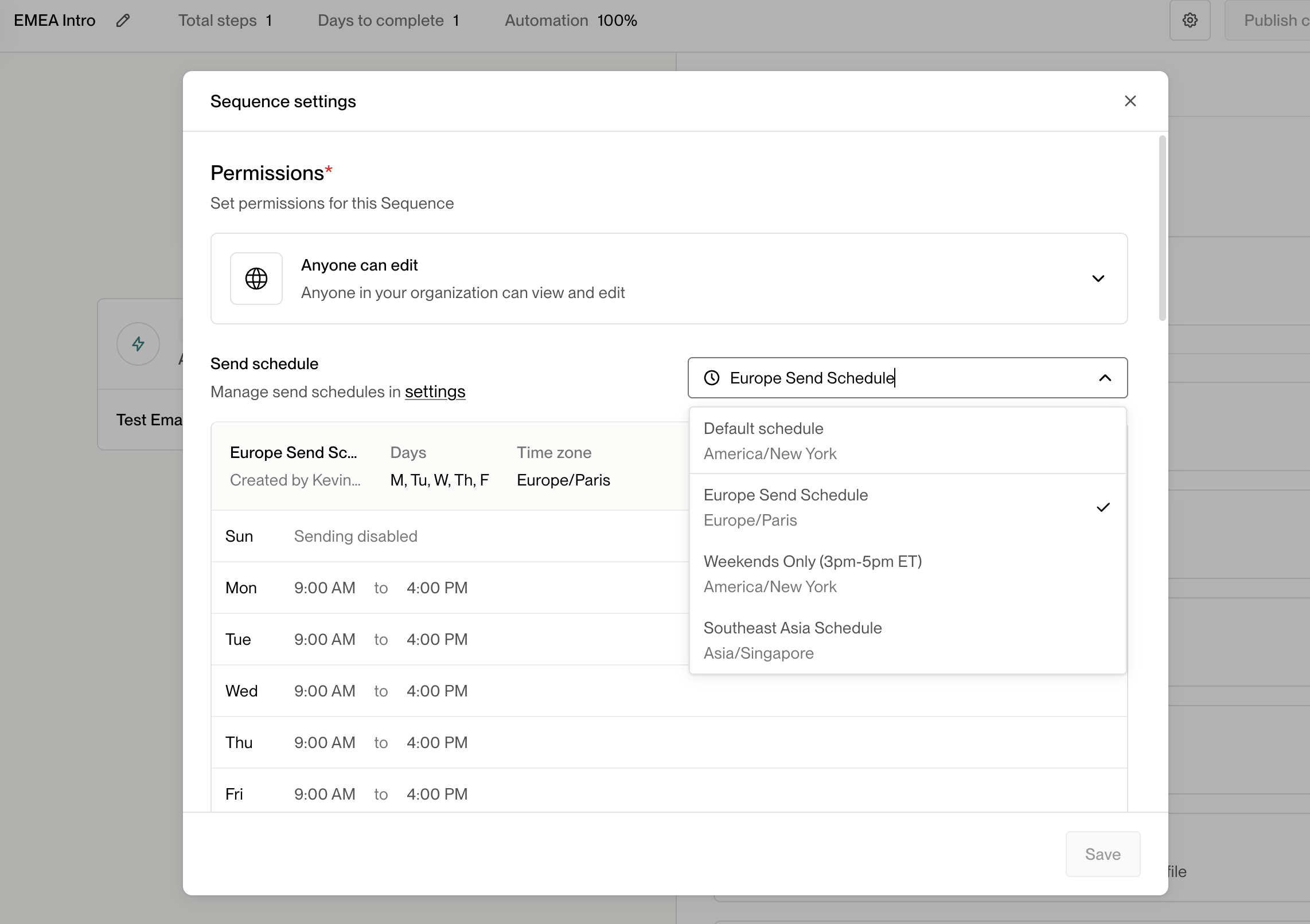 💡 Tip: If you’re running outreach across multiple regions, use different Custom Send Schedules for each region’s Sequences to optimize timing and engagement.